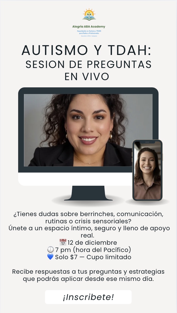 El 12 de diciembre a las 7 pm (hora del Pacífico) llevaré a cabo una sesión íntima por Zoom donde compartiré estrategias para berrinches, rutinas, comunicación, TDAH y crisis sensoriales.